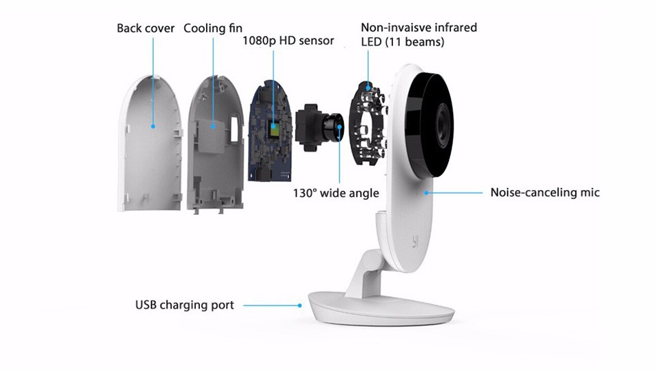.The design of YI 1080p Home Camera 2 is an extension of YI's first generation products and the result of professional design by our team members from Germany, Mainland China and Taiwan. Its smooth shape resembles a new-hatched egg; the wave-shaped base is a natural extension of the curves as a result of the designers repeated scrutiny. Static and action in one, sophistication in its simplicity.